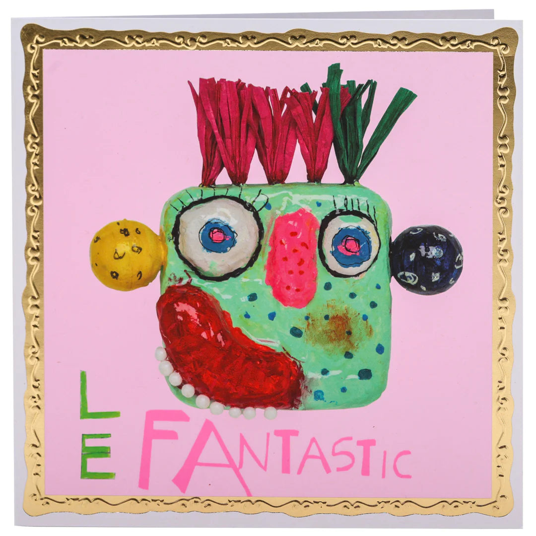What could be more fantastic than this happy and positive card? The mask was made and painted by a group of ARTHOUSE Unlimited artists. What an uplifting card for all occasions, now printed with a dazzling embossed gold frame and blank inside for your own personal message.