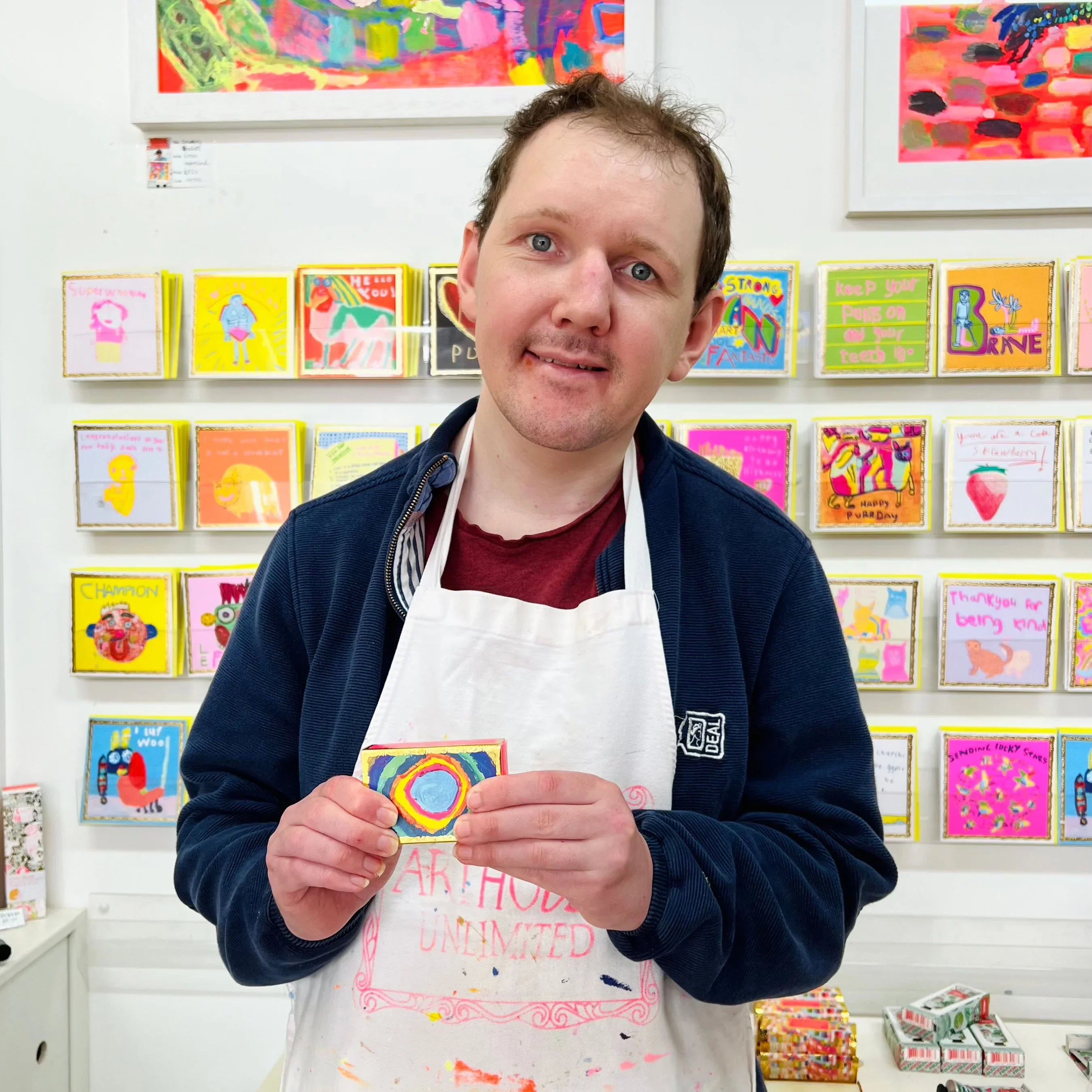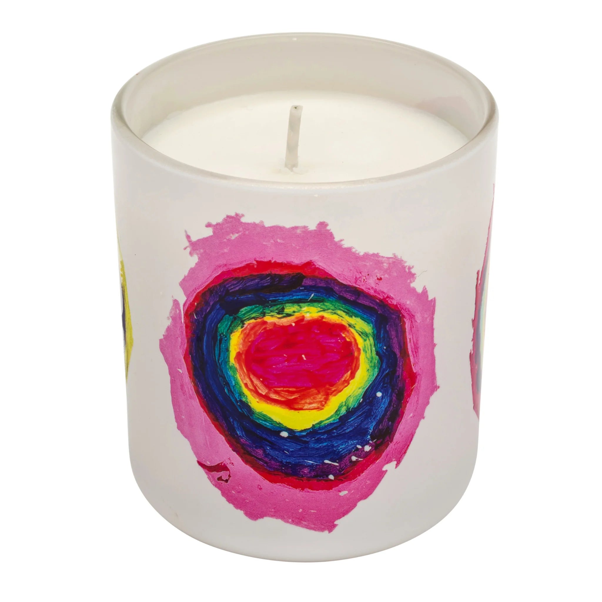 A uniquely fragranced vegan-friendly candle featuring the beautiful ‘Universal’ artwork created by talented ARTHOUSE Unlimited artist Arthur Lyle on white glass. The candle aroma evokes notes of White Flowers, Rose, Musk and Vanilla. Made in the UK, this candle has 40 hours of burn time & the plant wax is hand poured into a re-useable highly decorative vessel. A timeless gift for art lovers, joy givers & good-cause supporters everywhere!