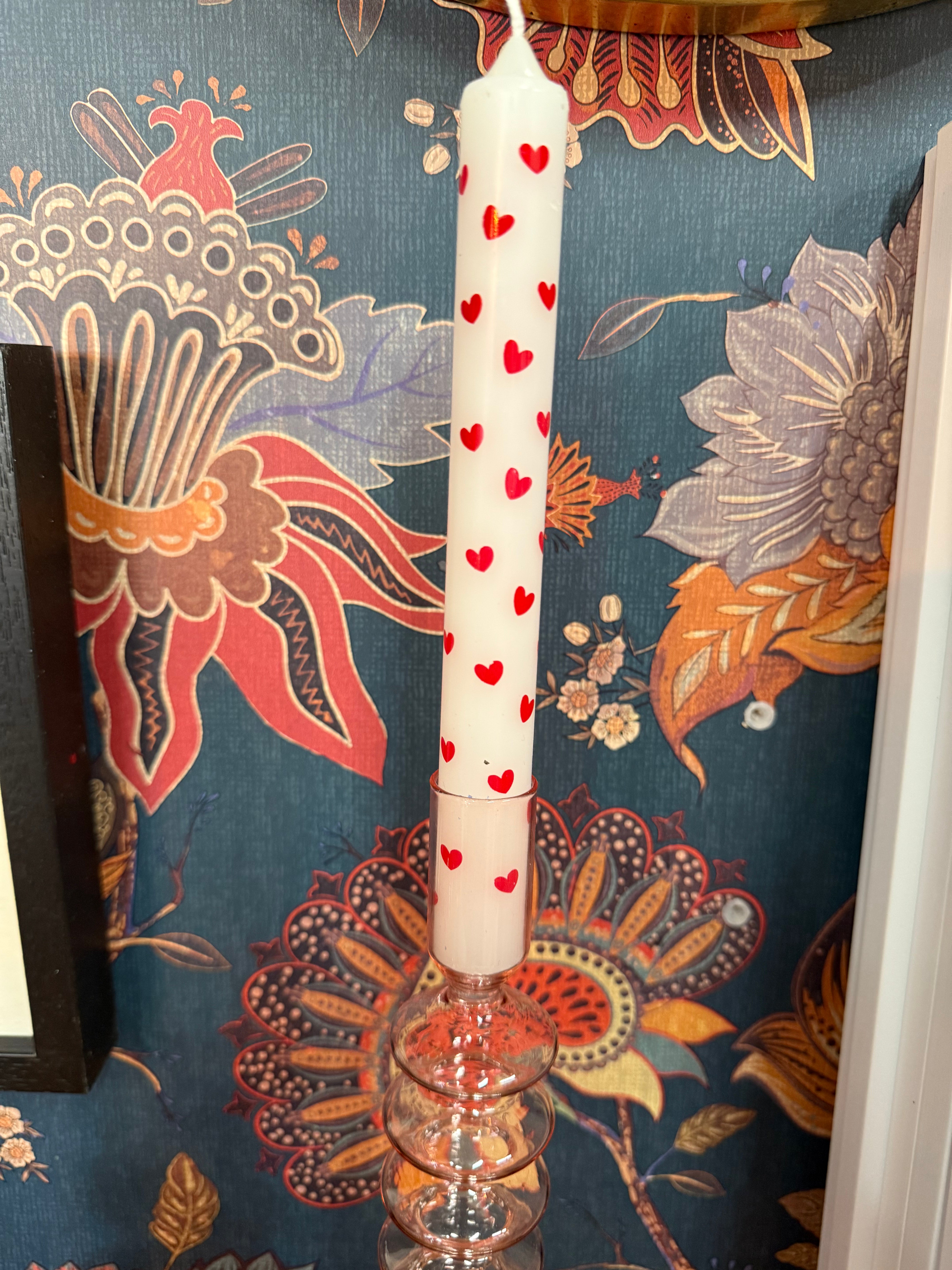 taper candle with red hearts