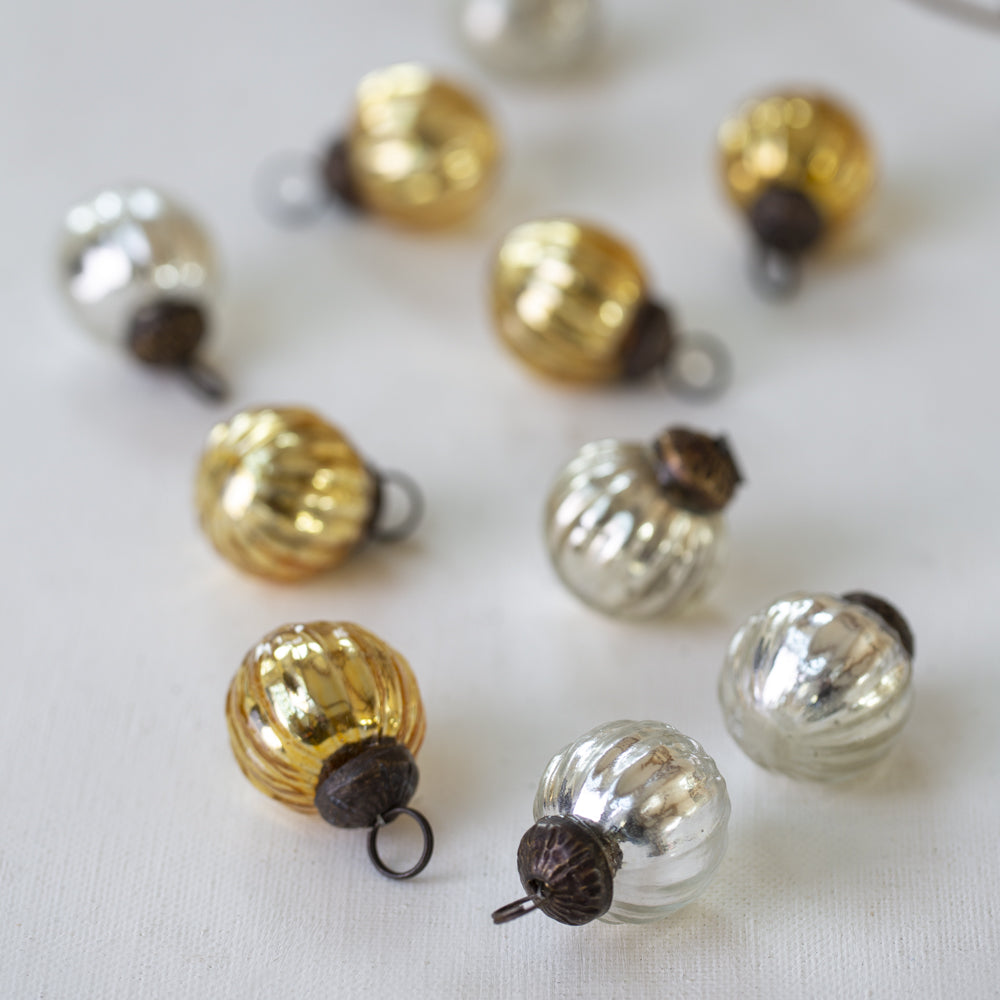 Mini Ribbed Baubles Antique Silver & Gold - Set of 10