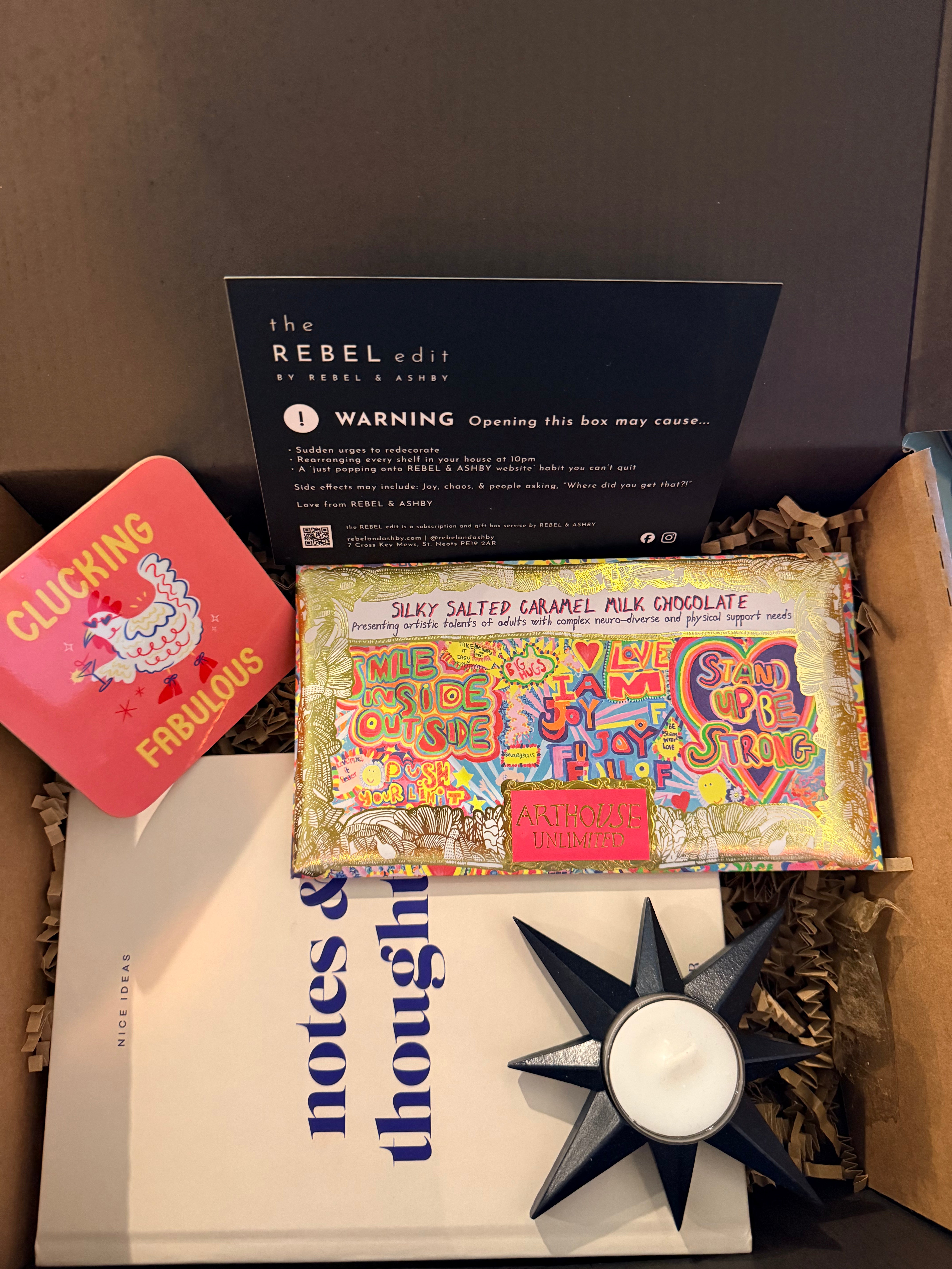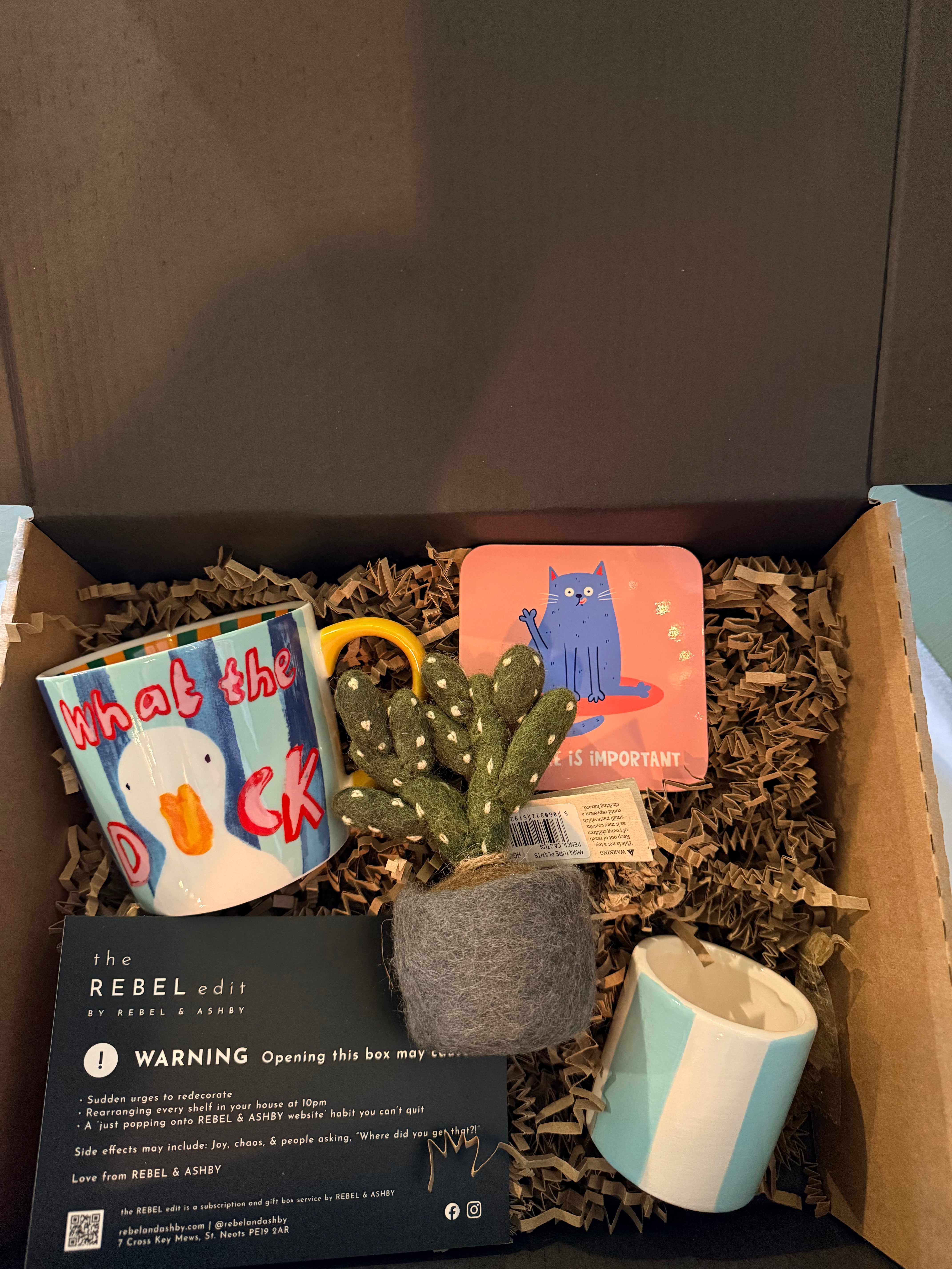 Each Rebel Edit box includes a curated mix of home dƩcor, lifestyle items and little treats. Some items are exclusive, one-off or not available on the website.