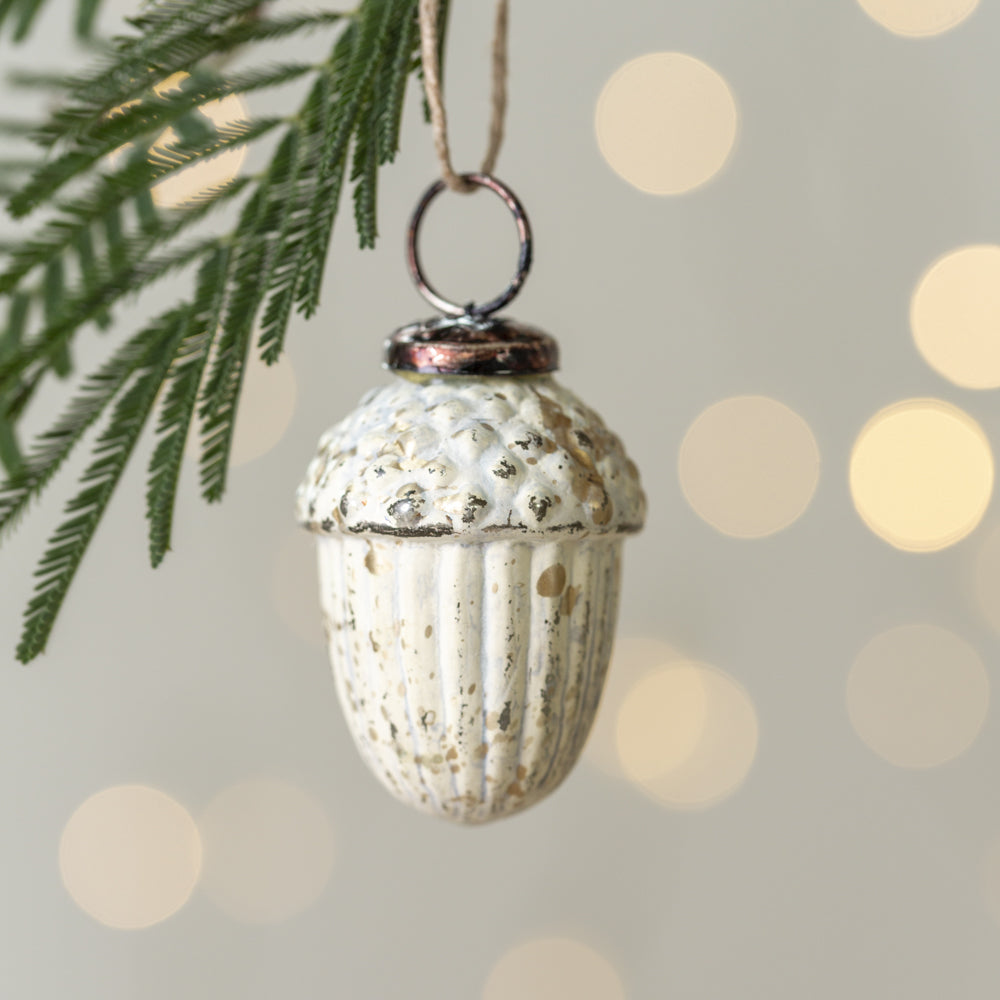 Add a touch of nature along with a pinch of class to your Christmas decorations this year with this delicate mini white and gold acorn decoration.. Jovial and quirky, this elegant glass ornament is beautifully crafted and will be a stunning addition to any festive interior!