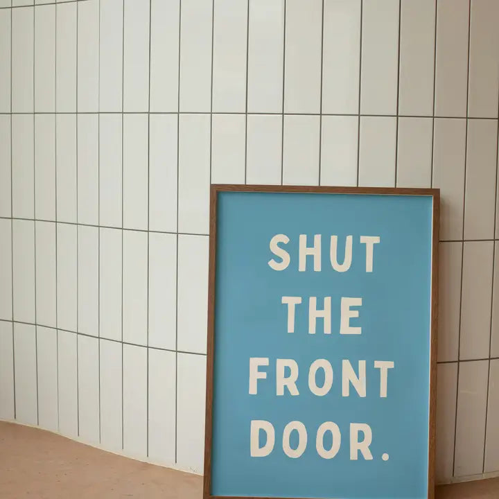Shut the Front Door | Cream and Denim | Art Print A3 Black Frame