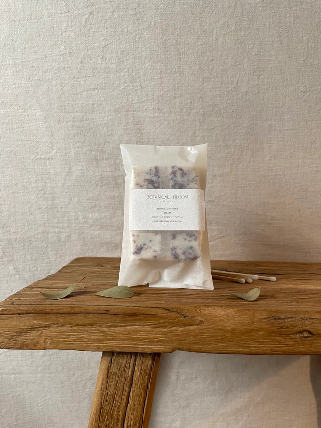 Our calming blend in a Botanical Soy Wax Melt form. This blend helps with relaxation, balancing emotions and combats anxiety.