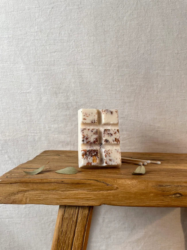 Our wax melts come in a block which can be snapped off into six individual pieces. Pop into your melter and burn until the essential oils have evaporated. Presented in a biodegradable glassine bag.