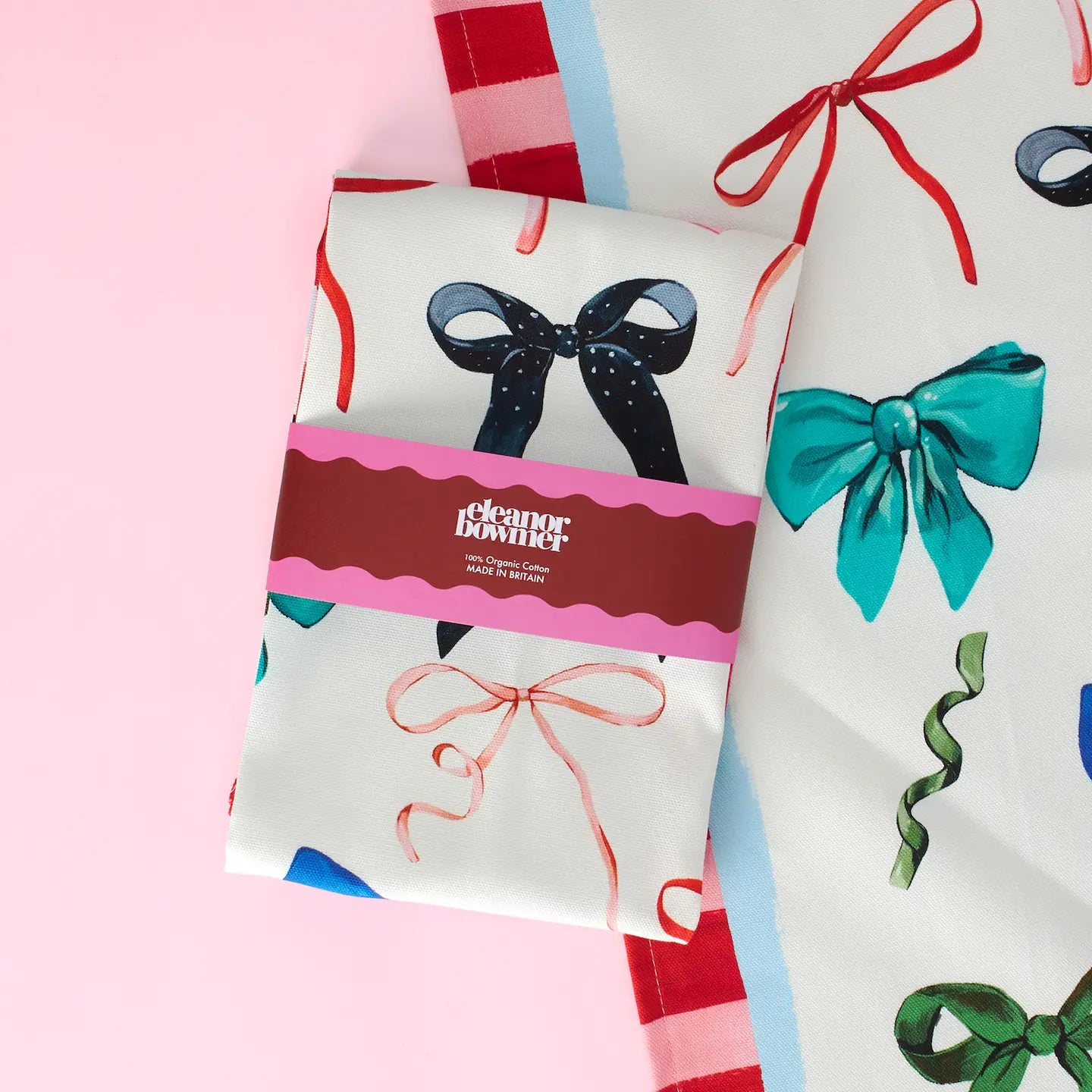 Dress up your kitchen with our Bows Tea Towel! The pretty bow design, surrounded by a bold red, pink and blue border, adds a touch of charm to any kitchen. Not only is it a great addition to your own kitchen, it also makes for a perfect gift.