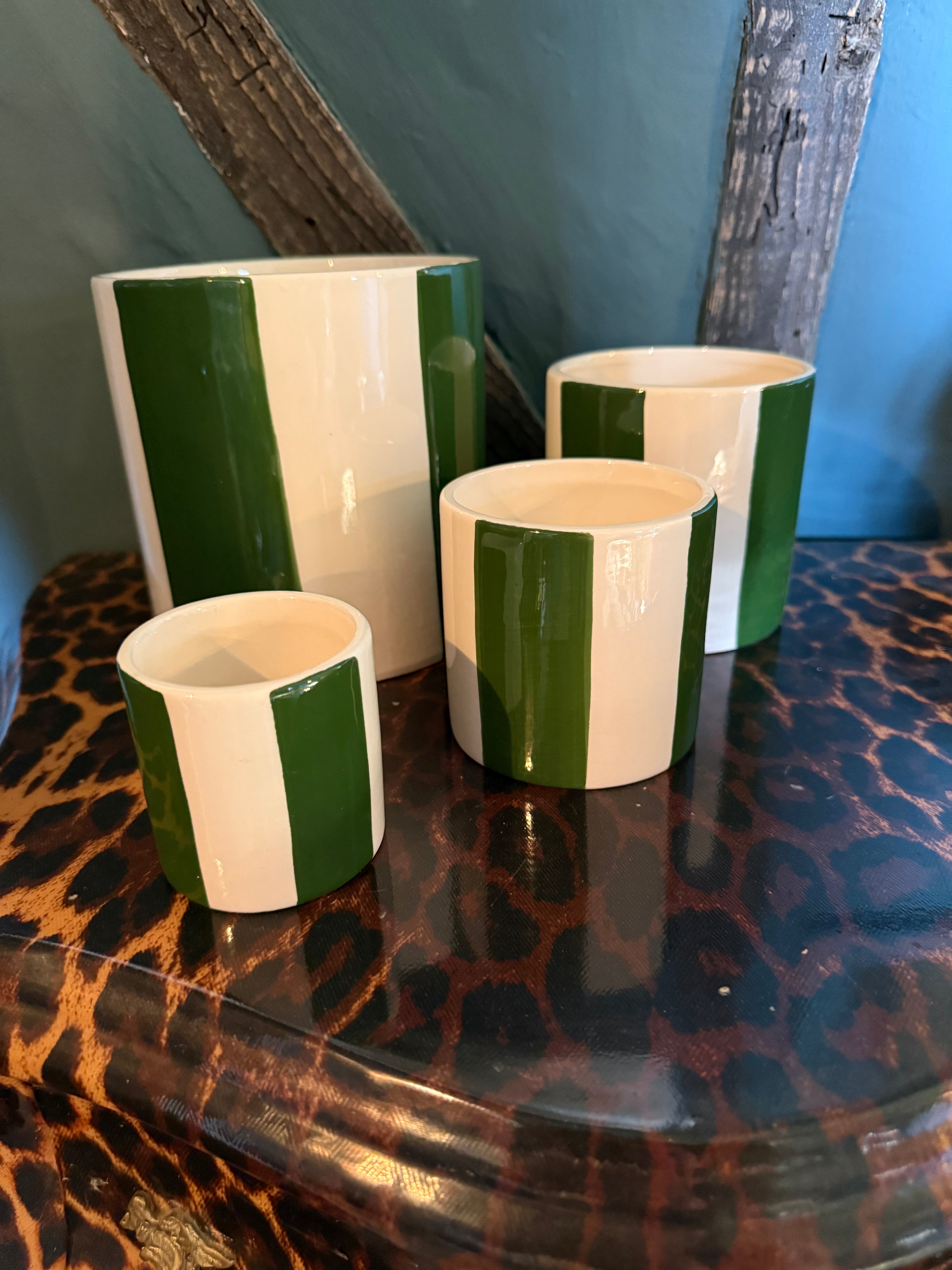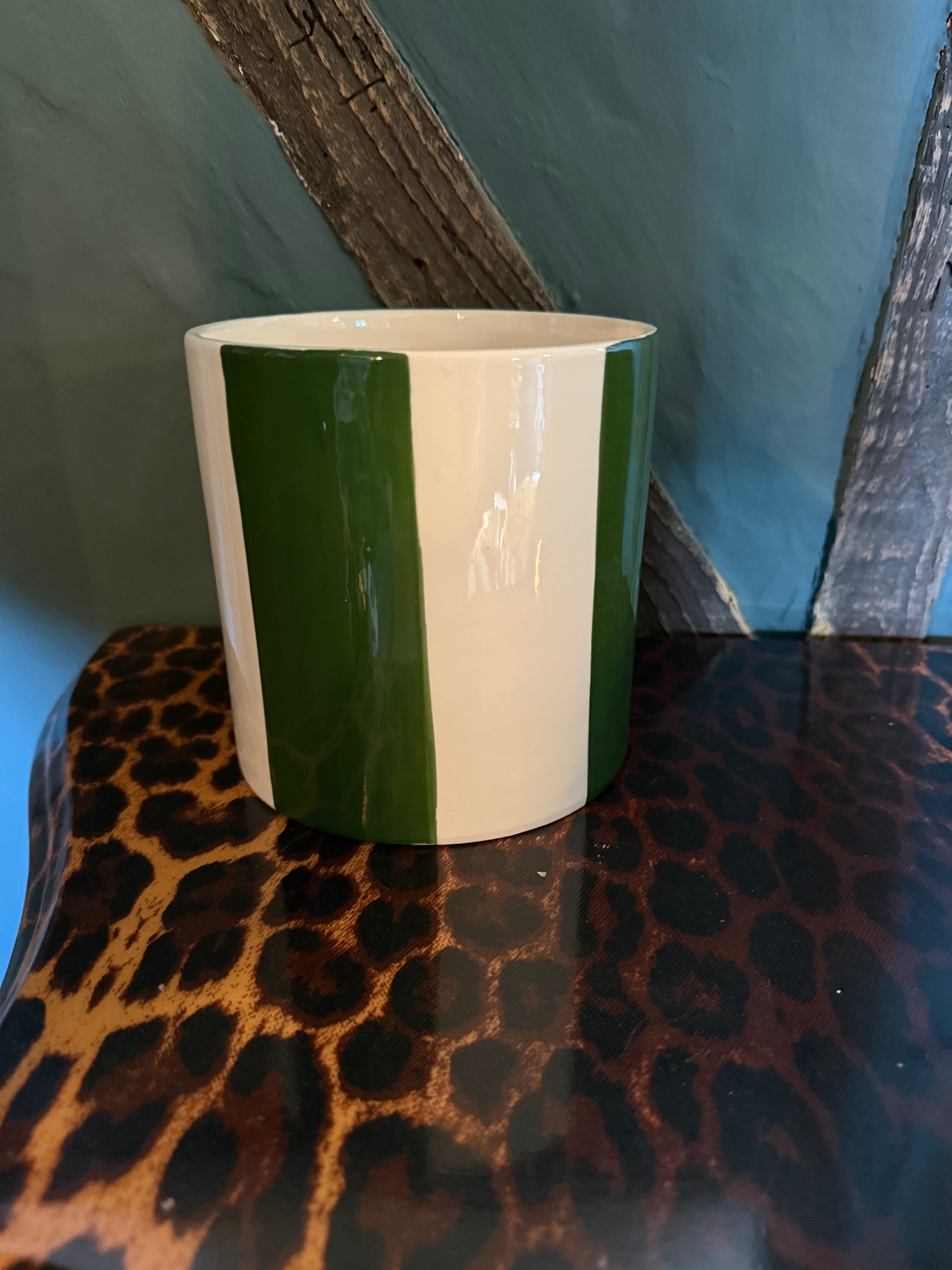 Large Ceramic Green Stripe Plant Pot / Various Sizes available