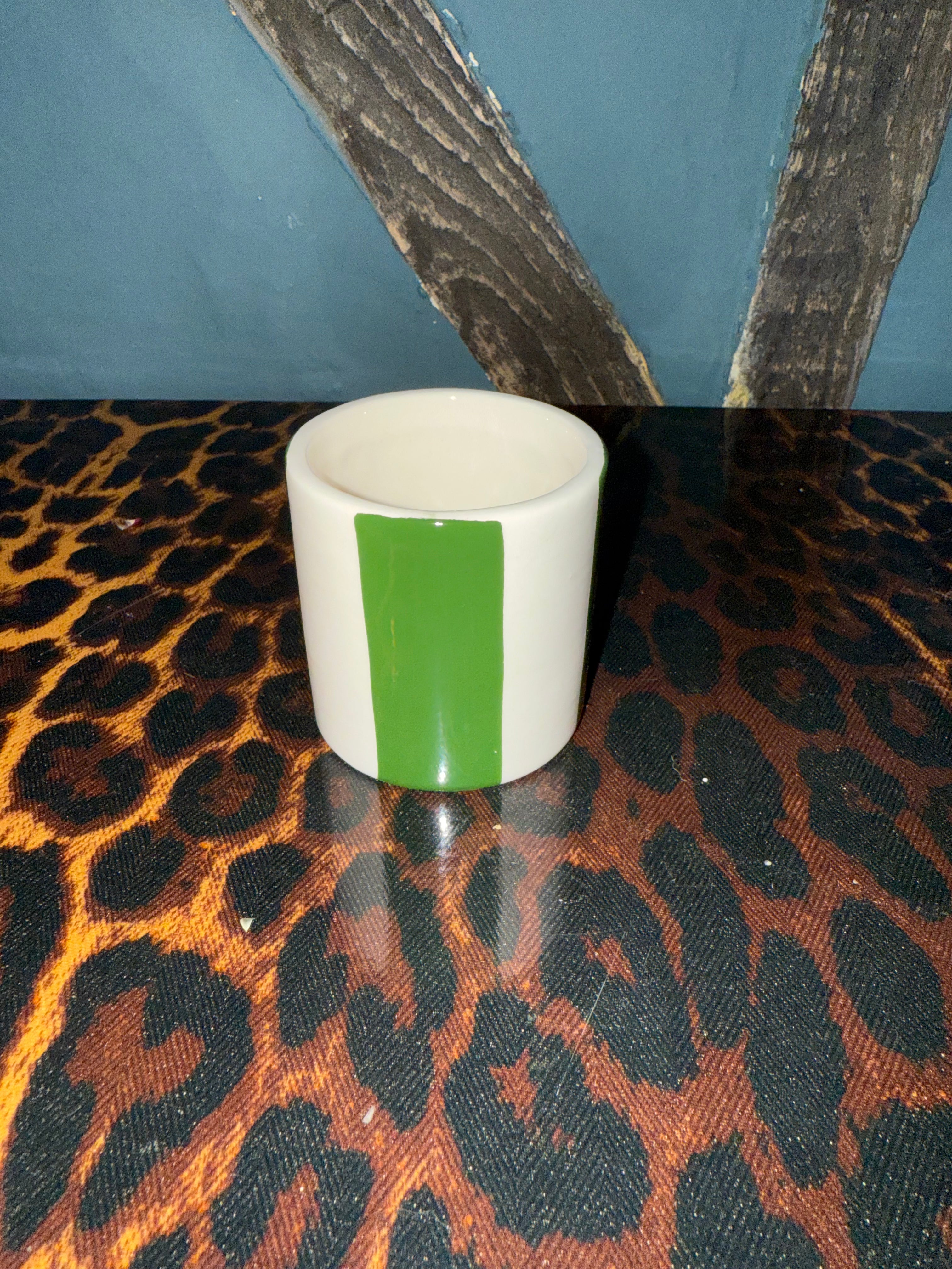Extra Small Ceramic Green Stripe Plant Pot / Various Sizes available
