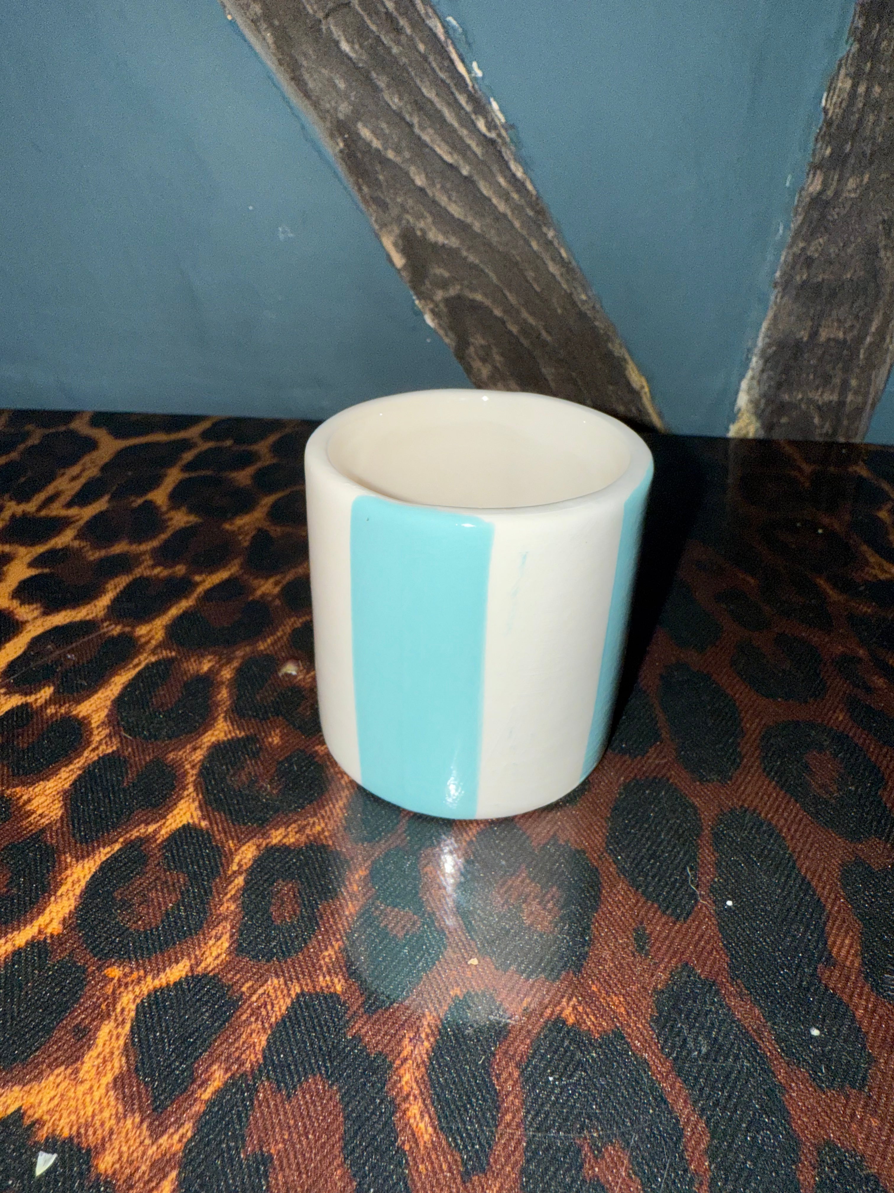 Extra Small Ceramic Light Blue Stripe Plant Pot / Various Sizes available