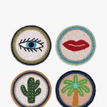 Say goodbye to boring coasters with this vibrant set bursting with personality. Each round coaster is hand-beaded and features a different playful icon from the Eleanor Bowmer Electric Coast range. Designs include lips, palm trees, eyes and cacti. Protect your surfaces in style and add a splash of joy to your next gathering with these quirky, colourful coasters.