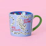 The contrasting green handle adds a pop of colour to the pastel background and black and white leopard illustrations. Enjoy a cup of coffee or tea in style and start your day off with a positive mindset.