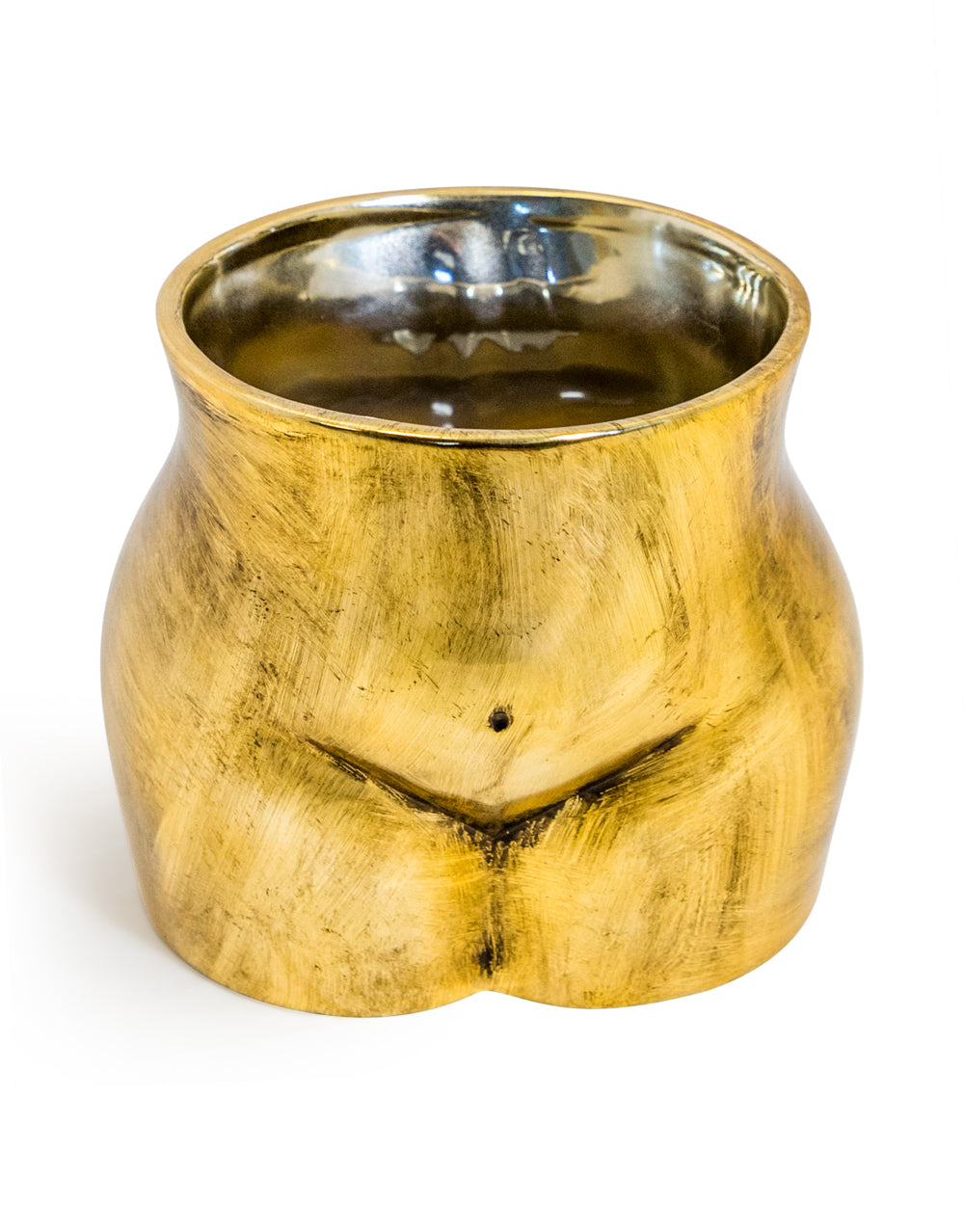 Add some naughtiness to your home with this Cheeky Antique Gold Booty Flower Planter. This ceramic gold planter is in the form of a cheeky lady with a cute perky bottom. A fun planter which would put a smile on anyone's face.