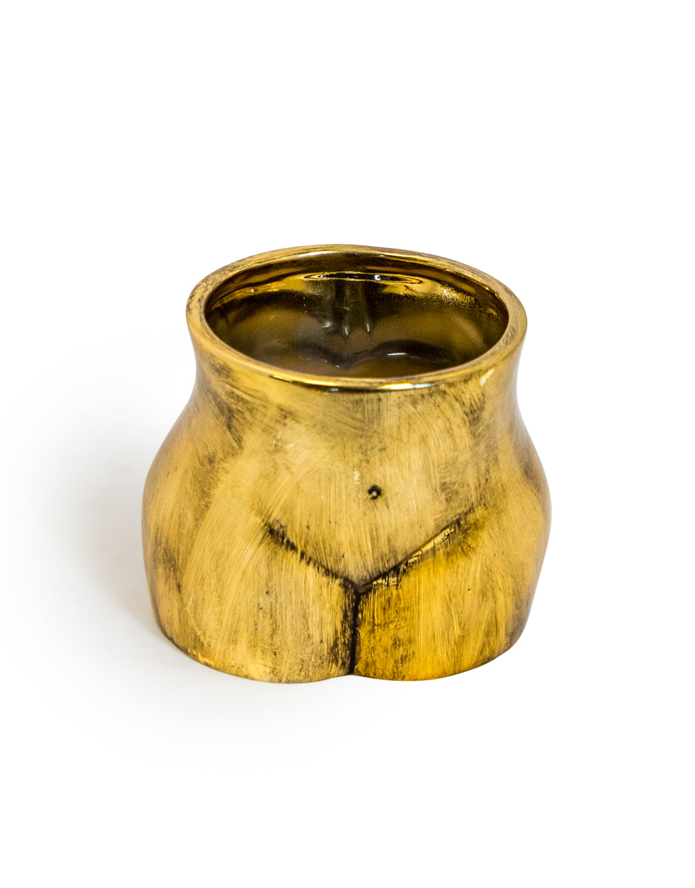 Add some naughtiness to your home with this Cheeky Antique Gold Booty Flower Planter. This ceramic gold planter is in the form of a cheeky lady with a cute perky bottom. A fun planter which would put a smile on anyone's face.