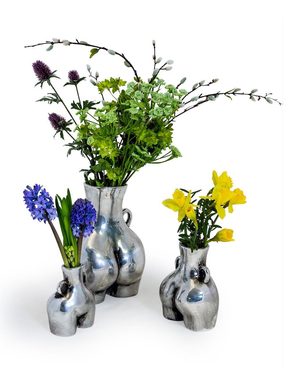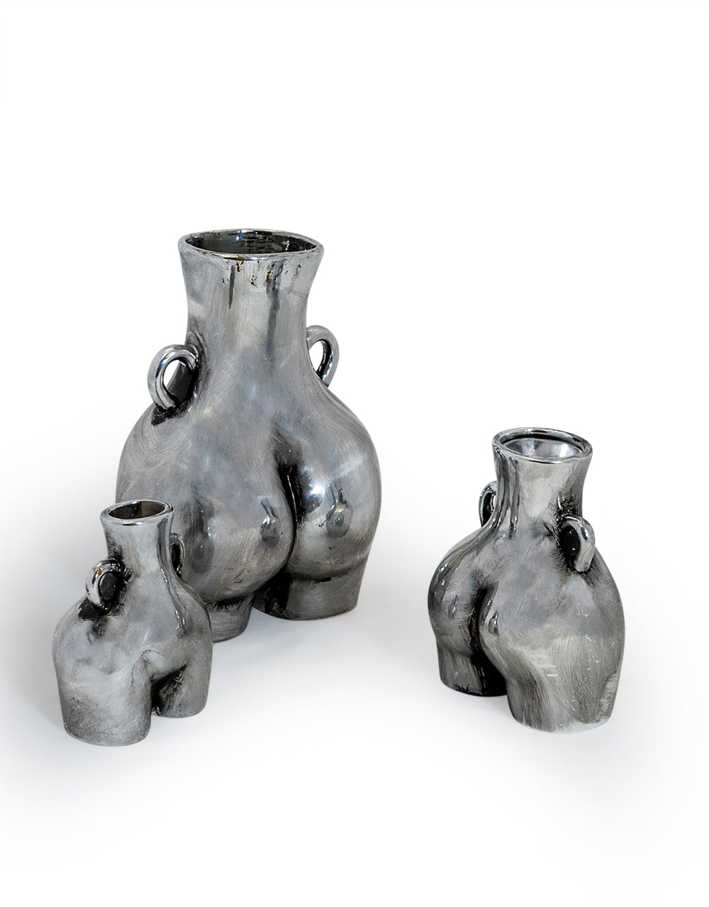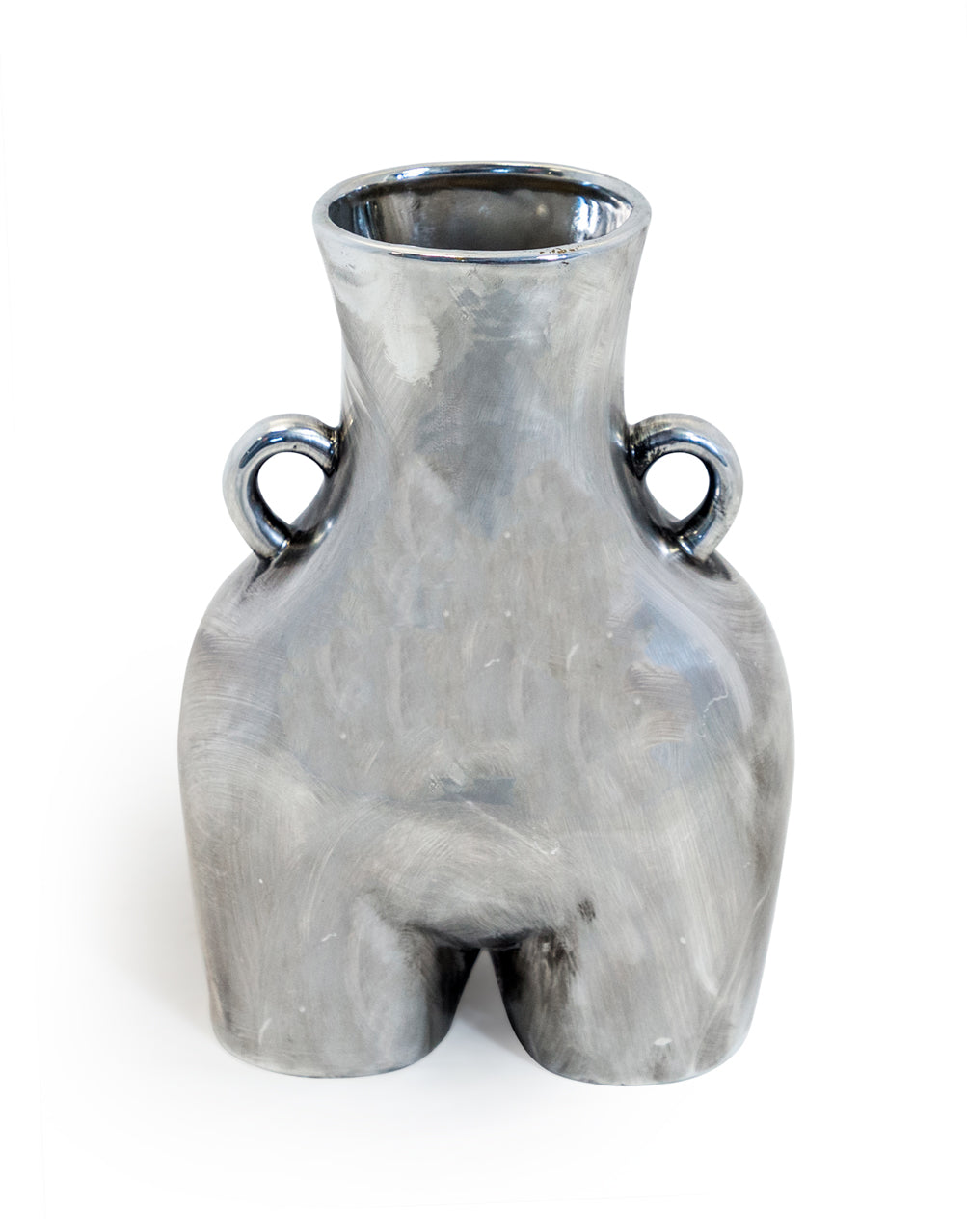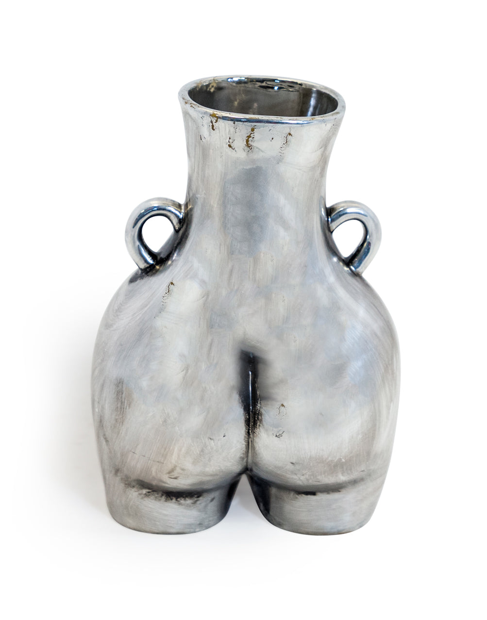 Beautifully designed, this Silver Large 'Love Handles' Booty Vase takes inspiration from the curvature of a woman's body, creating a cheeky yet stand out piece that will instantly draw attention wherever it's placed in the home. Crafted from ceramic, it comes complete with small carry handles and has a silver finish, perfect for blending into any modern decor style. Display on its own as a decorative added touch or with a single flower stem.