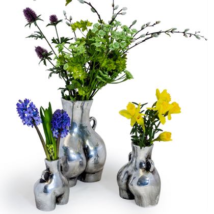 Beautifully designed, this Silver 'Love Handles' Booty Vase takes inspiration from the curvature of a woman's body, creating a cheeky yet stand-out piece that will instantly draw attention wherever it's placed in the home. Crafted from ceramic, it comes complete with small carry handles and has a silver finish, perfect for blending into any modern decor style. Display on its own as a decorative added touch or with a single flower stem.