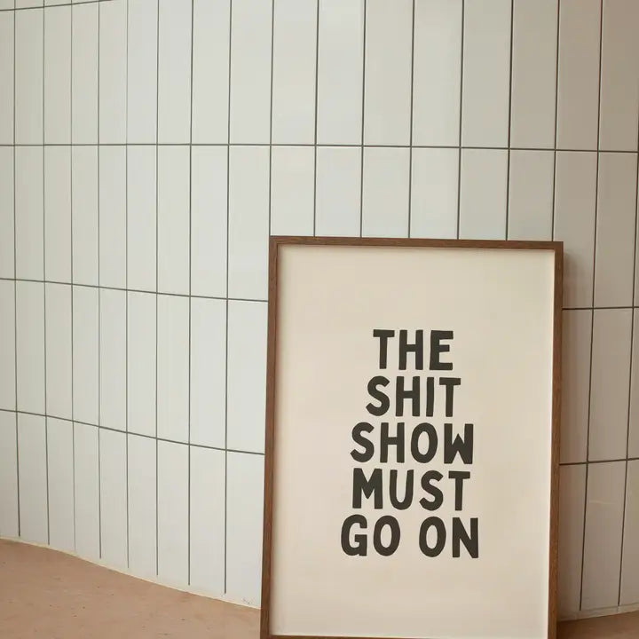 The Shit Show Must Go On | Black and Cream | Art Print A3 white frame